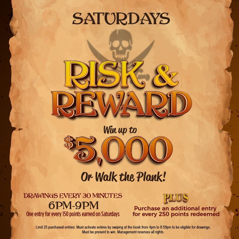 Drawings every 30 minutes from 6pm to 9pm. One entry for every 150 points earned on Saturdays.