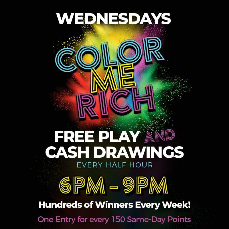 Drawings every 30 minutes from 6pm to 9pm. One entry for every 250 points earned on Saturdays.